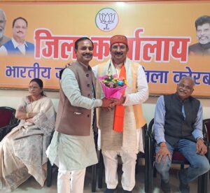 कोरबा। भारतीय जनता पार्टी कोरबा जिला के निवर्तमान जिलाध्यक्ष डॉ. राजीव सिंह जी को रायपुर संभाग का सह प्रभारी बनाए जाने पर शनिवार को कोरबा जिले में उत्साह और उल्लास का माहौल देखने को मिला। इस अवसर पर भाजपा जिलाध्यक्ष श्री गोपाल मोदी जी, महापौर श्रीमती संजू देवी राजपूत जी सहित जिलेभर के भाजपा पदाधिकारियों एवं कार्यकर्ताओं द्वारा डॉ. राजीव सिंह जी का भव्य व जोरदार स्वागत किया गया। डॉ. राजीव सिंह जी का स्वागत पाली से लेकर कटघोरा, दर्री, सीएसईबी चौक होते हुए भाजपा जिला कार्यालय तक जगह-जगह पुष्पवर्षा, फूलमालाओं और नारों के साथ किया गया।