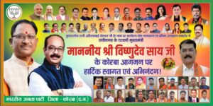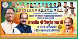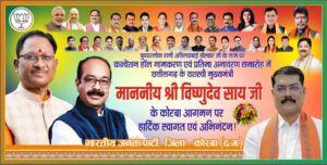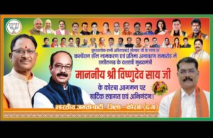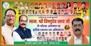 कोरबा। मुख्यमंत्री विष्णुदेव साय गुरुवार को कोरबा प्रवास पर आ रहे है। वे यहां रजग़ामार रोड पर स्थित कन्वेंशन हाल का पुण्यश्लोक रानी अहिल्याबाई होल्कर जी के नाम पर नामकरण करेंगे व साथ ही रानी अहिल्याबाई जी की प्रतिमा का करेंगे अनावरण। माननीय मुख्यमंत्री जी के कोरबा आगमन को लेकर भाजपा जिलाध्यक्ष गोपाल मोदी जी के नेतृत्व में जोर-शोर से तैयारीयां चल रही हैं। माननीय मुख्यमंत्री जी के साथ प्रदेश के उप मुख्यमंत्री और जिले के प्रभारी मंत्री अरुण साव, छत्तीसगढ़ हाउसिंग बोर्ड के अध्यक्ष अनुराग सिंहदेव भी आ रहे है।