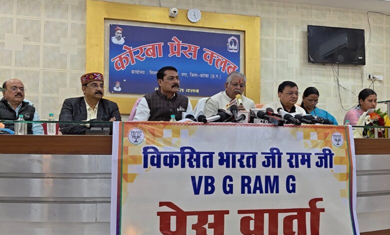 कोरबा। प्रधानमंत्री श्री नरेंद्र मोदी जी के नेतृत्व में ग्रामीण भारत के सर्वांगीण विकास की दिशा में एक ऐतिहासिक कदम उठाते हुए केंद्र सरकार द्वारा “विकसित भारत जी-राम-जी अधिनियम 2025” लाया गया है, जो गांवों को आत्मनिर्भर और ग्रामीण अर्थव्यवस्था को मजबूत बनाने में मील का पत्थर साबित होगा। उक्त बातें माननीय श्री धरमलाल कौशिक जी, विधायक बिल्हा विधानसभा, पूर्व विधानसभा अध्यक्ष एवं पूर्व प्रदेश अध्यक्ष भाजपा (छ.ग.) ने प्रेस क्लब, तिलक भवन टीपी नगर में आयोजित प्रेस वार्ता को संबोधित करते हुए कही। इस अवसर पर उद्योग मंत्री श्री लखन लाल देवांगन जी, भाजपा जिलाध्यक्ष श्री गोपाल मोदी जी, महापौर श्रीमती संजू देवी राजपूत जी, प्रदेश मंत्री सुश्री रितु चौरसिया जी, सह संभाग प्रभारी रायपुर श्री डॉ. राजीव सिंह जी उपस्थित रहे।