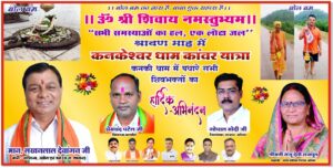 श्रावण मास के पवित्र अवसर पर कनकेश्वर धाम कांवड़ यात्रा कल सावन के सोमवार को प्रातः 4:00 बजे माँ सर्वमंगला मंदिर के समीप हसदेव नदी के पवित्र घाट से जल भरकर “बोल बम” के जयघोष के साथ पूरे भक्तिभाव से भोलेनाथ को जलाभिषेक हेतु कनकेश्वर धाम, कनकी की ओर प्रस्थान करेंगे और यहां शिवलिंग को जल अर्पित करते हुये भगवान शिव का आशीर्वाद प्राप्त करेंगे।