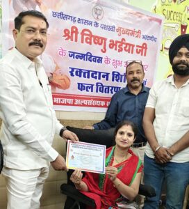 माननीय मुख्यमंत्री जी के जन्मदिवस पर रक्तदान शिविर, वृक्षारोपण, अस्पतालों में फल वितरण, जरूरतमंदों को राशन सामग्री प्रदान, तालाबों की साफ-सफाई, महतारी सम्मान समारोह, विभिन्न सामाजिक वर्गों का सम्मान तथा मंदिरों में पूजा-अर्चना के बाद दीप प्रज्ज्वलन व प्रसादी वितरण जैसे अनेक सेवा कार्य संपन्न किए गए। जिले के सभी मंडलों में भाजपा कार्यकर्ताओं ने बढ़-चढ़कर भाग लिया और जनकल्याण की भावना को साकार रूप दिया।