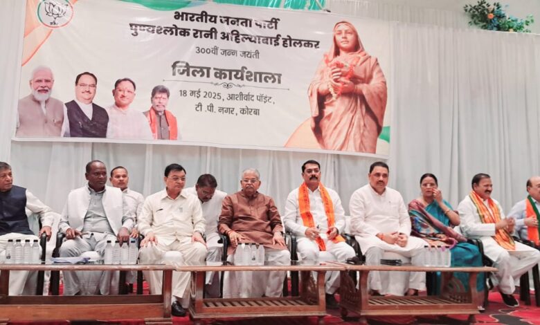लोकमाता पुण्यश्लोका महारानी अहिल्याबाई होल्कर की 300वीं जयंती के उपलक्ष्य में भारतीय जनता पार्टी कोरबा द्वारा एकात्म परिसर में एक भव्य कार्यशाला का आयोजन किया गया। इस अवसर पर उनके सुशासन, न्यायप्रियता, महिला सशक्तीकरण, सांस्कृतिक पुनर्जागरण और सामाजिक समरसता जैसे आदर्शों पर गहन विचार-विमर्श हुआ।